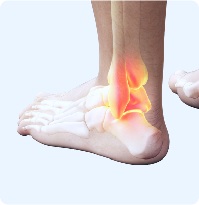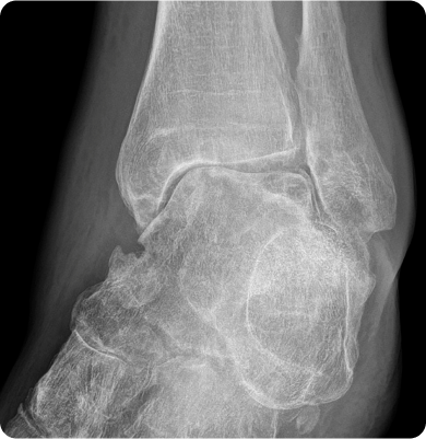 발목을 구성하는 뼈와 뼈 사이의 연골이 손상되어 염증이 생기고 시간이 지나면서 점차적으로 발목 관절의 기능이 떨어지는 질환