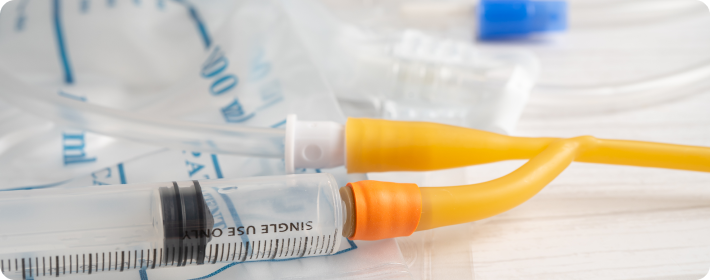 만성 혈액투석 환자에게 사용되는 장기 삽입형 중심정맥 카테터입니다. 목이나 가슴의 큰 정맥에 삽입되며 혈액투석 시 혈액 흐름을 원활하게 합니다